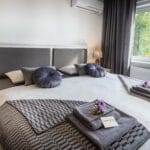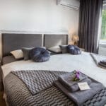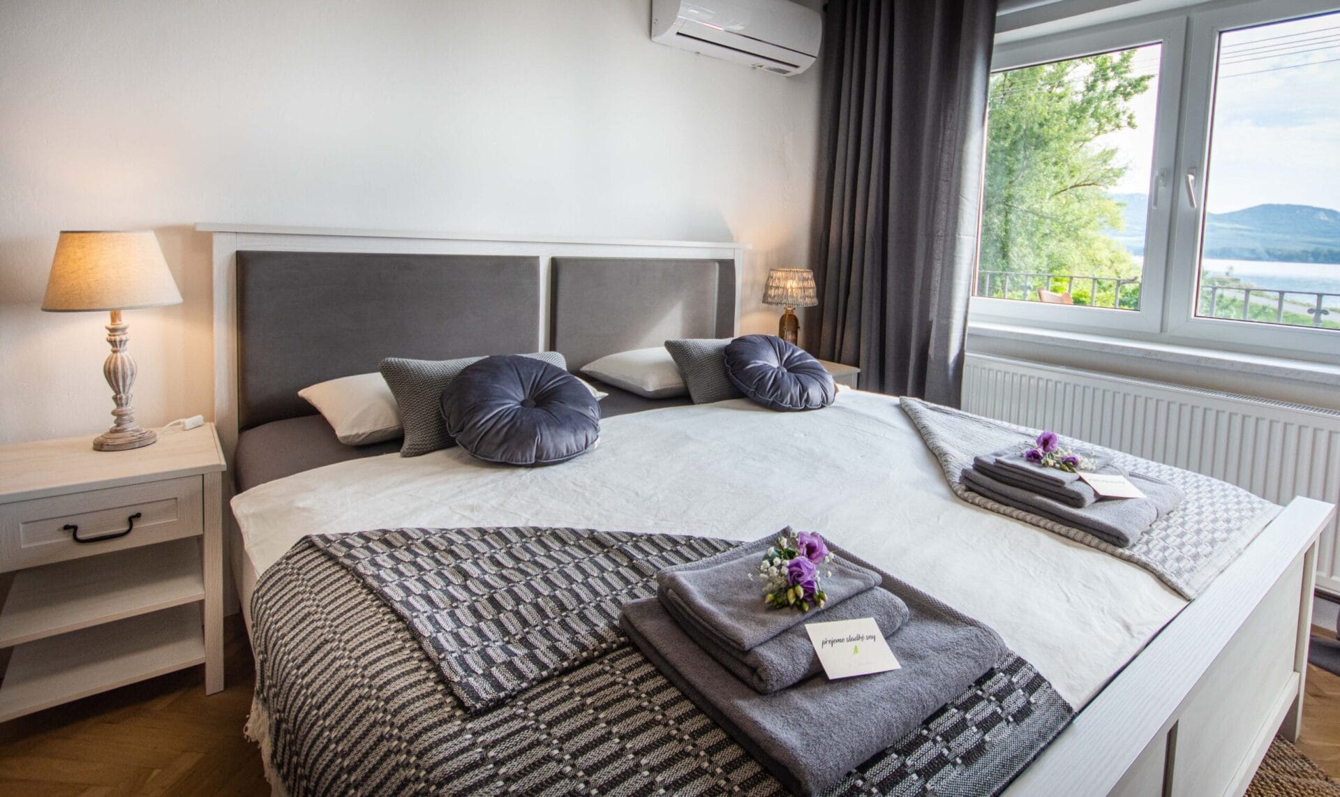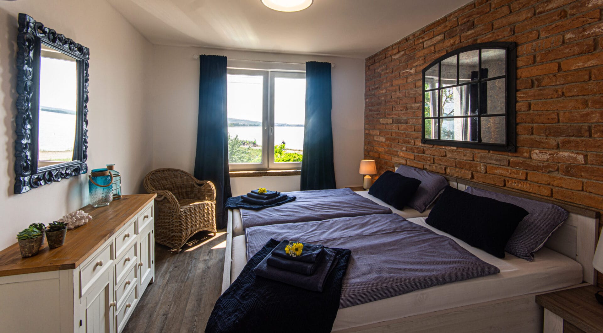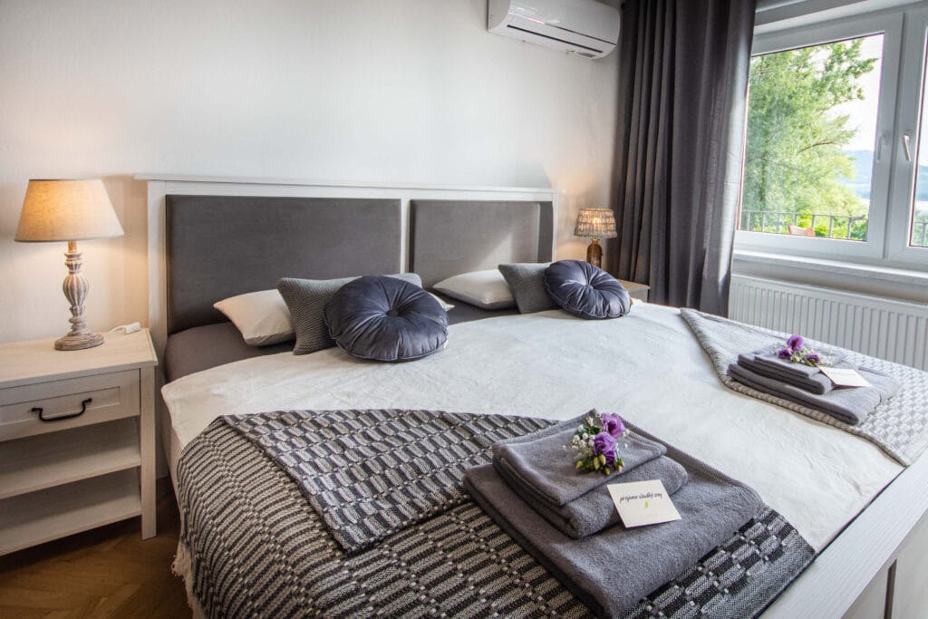 Dvě ložnice, jeden apartmán. Prostor, který využijete, když budete chtít dorazit ve dvou dvojicích, nebo třeba v partě kamarádů či kamarádek, co se dlouho neviděli a potřebují si toho hodně říct. Pro takové případy máme terasu s krásným výhledem a grilem, kde si můžete povídat do noci, i stůl vevnitř, když už vás zvenku vyžene chlad. Můžete si tady připravovat hody ze všech těch dobrot, které se dají koupit v našem okolí i u nás ve snídaňovém baru. Nebo si minimálně vychutnat víno, které pro vás máme nachystané ve vinných schránkách.